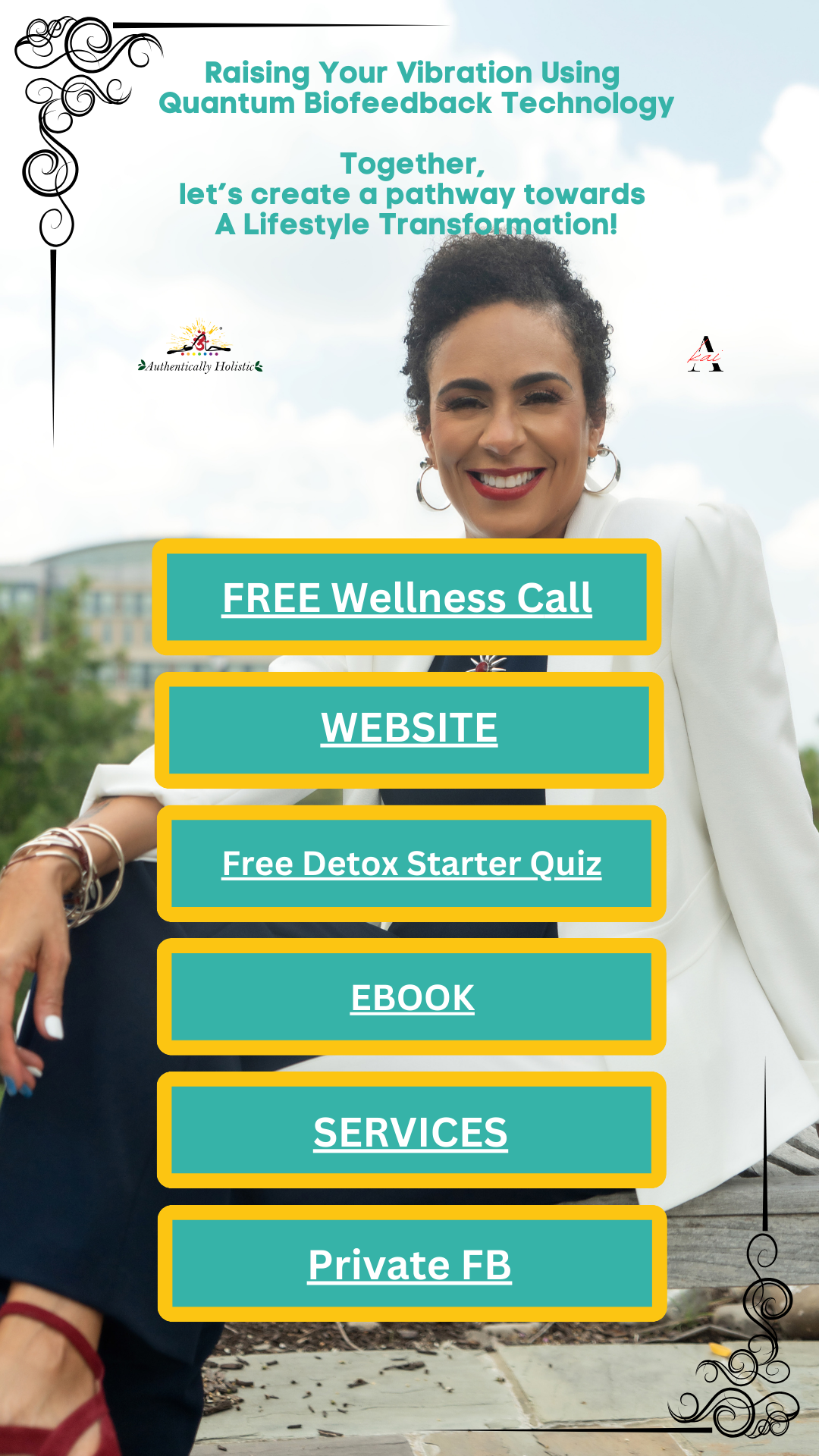 She uses Biofeedback Technology and Quantum Health Assessments to "Help Empowered Professionals Manifest A Lifestyle Transformation!"